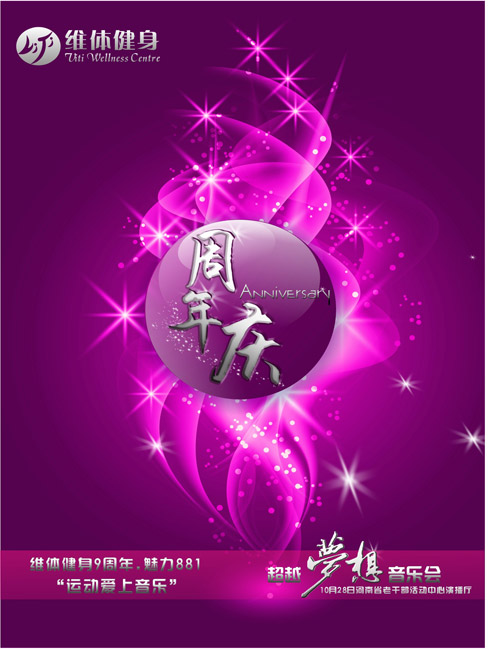 郑州维体健身9周年音乐会将于2012年10月28日15点在河南老干部活动中心演播厅盛大开幕。此次活动特邀艺术家范军老师、维体健身团操总教练—王广成及电台DJ帅天等嘉宾与您一同见证维体健身9年来的辉煌历程。